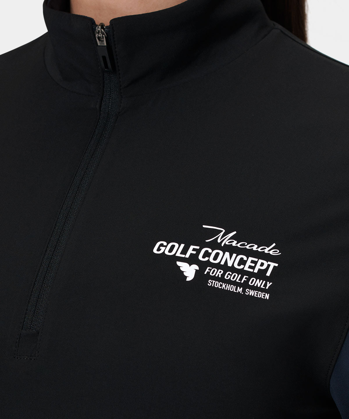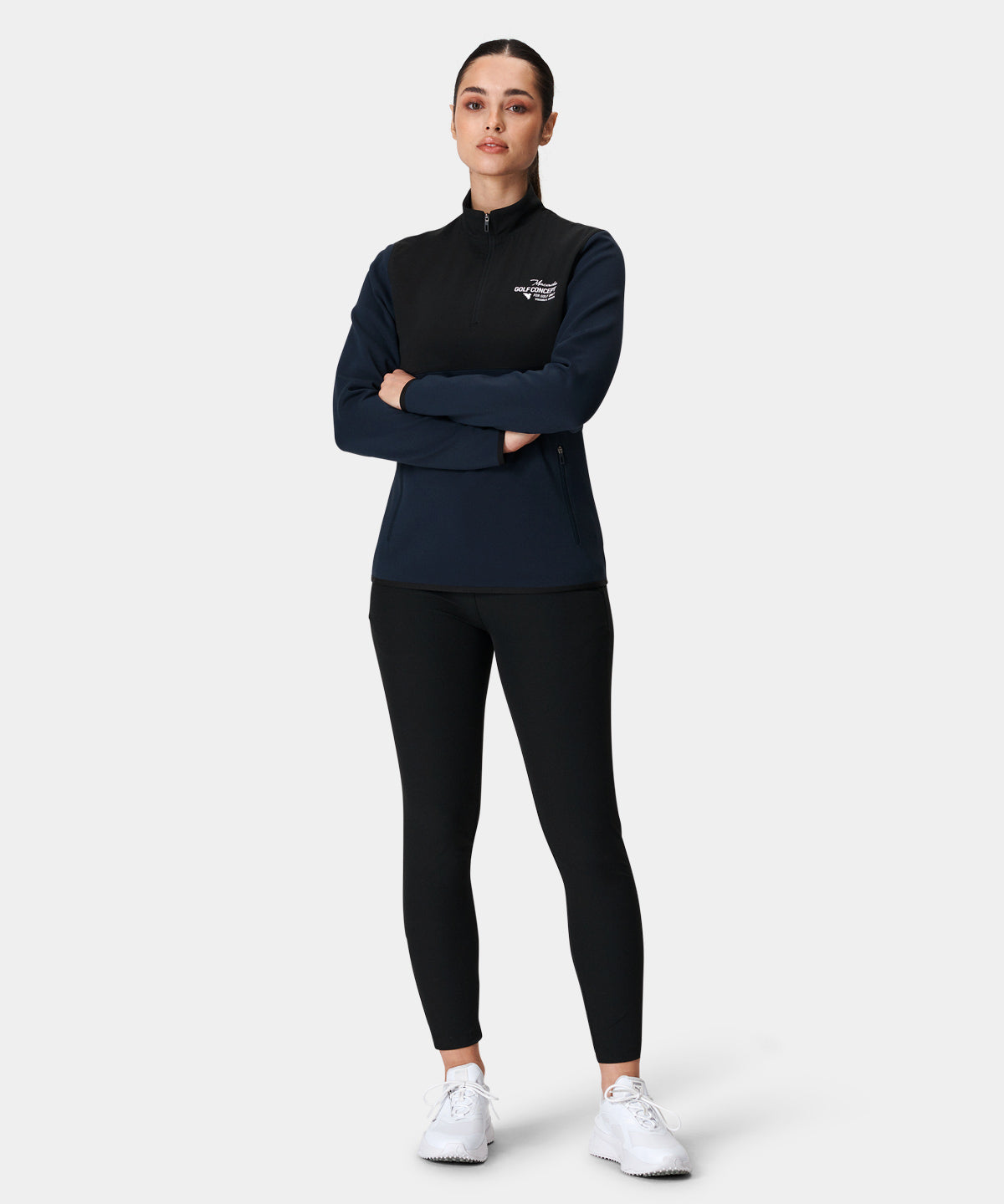 Den här svarta överdragsdröjan är en del av vår Tour Popover kollektion. Tillverkad av ett mjukt neopren material, gör den här sportiga quarter zip tröjan till en favorit på banan. Tröjan är förstärkt över axlarna för att ge ett extra skydd mot oväntat väder.