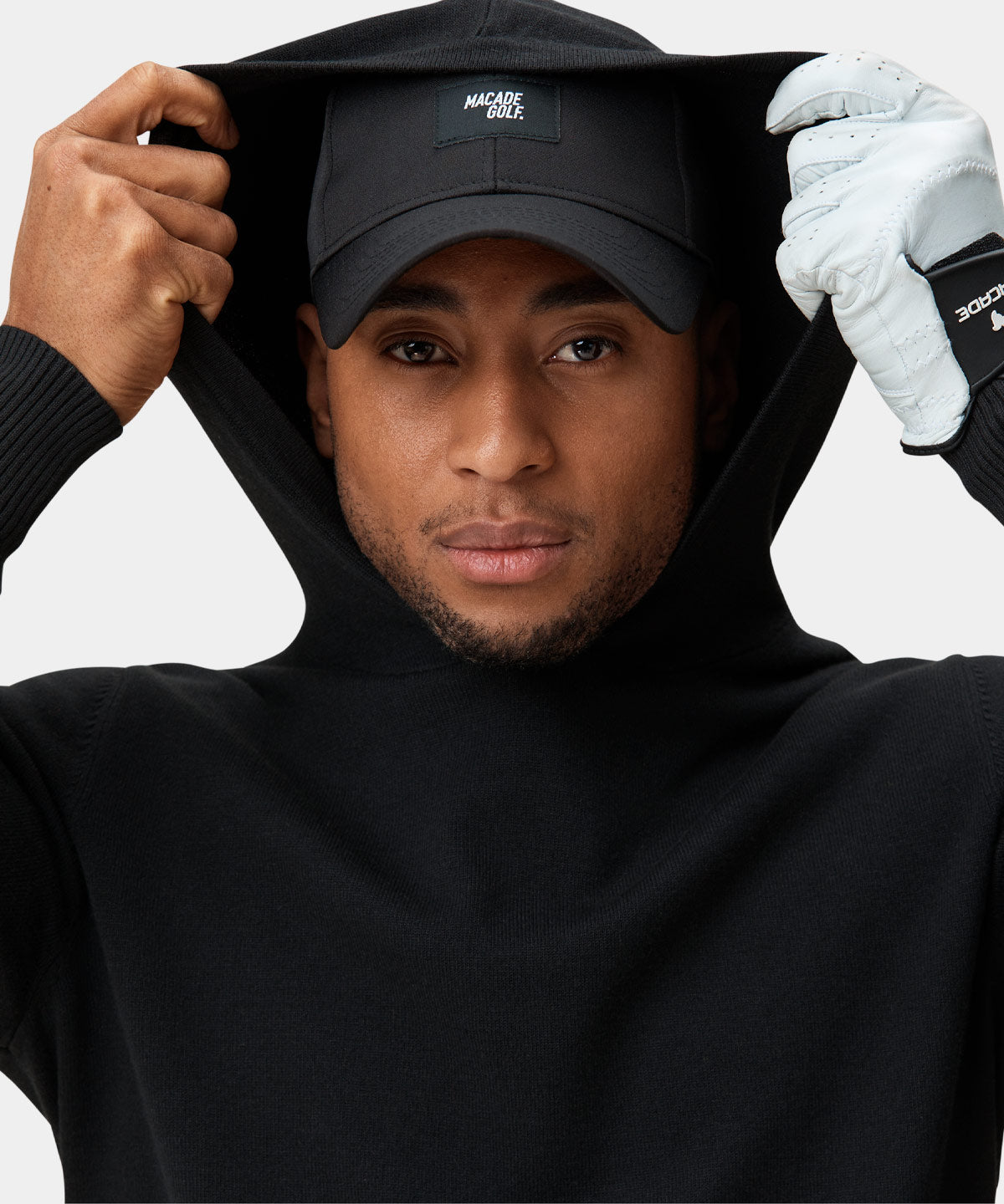 Denna stickade luvtröja är tillverkad i vår mjuka bomull och kashmirblandning, vilket gör den både skön mot huden och värmande under kyligare dagar. Huvan har en låg profil för att inte hämma din sving medan de ribbstickade öppningarna gör att tröjan sitter åt på rätt ställen. Den subtila logotypen på vänster arm ger tröjan en clean look som funkar både på och utanför golfbanan.