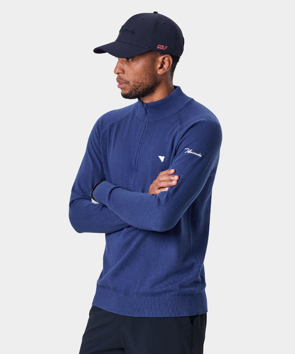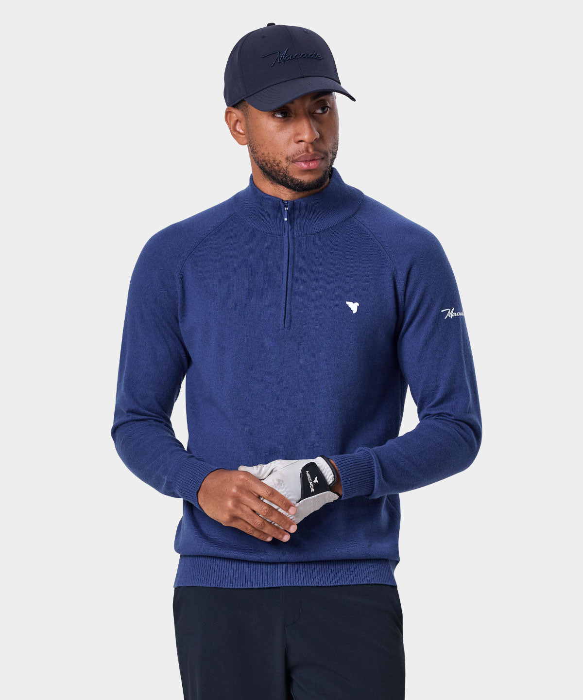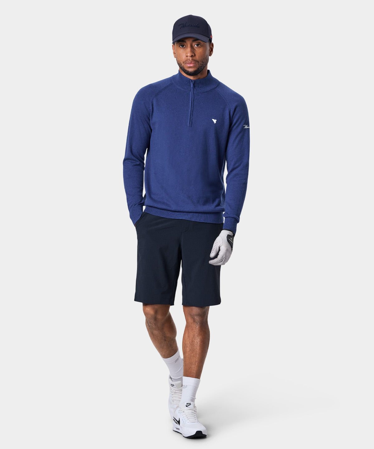 Ett perfekt val för kyligare dagar på golfbanan. Denna quarter zip-tröja är tillverkad i en mjuk bomullsblandning som ser till att hålla dig varm golfrundan igenom. De subtilt placerade logotyperna på bröstet och i nacken gör att tröjan passar minst lika bra för golf som på stan.