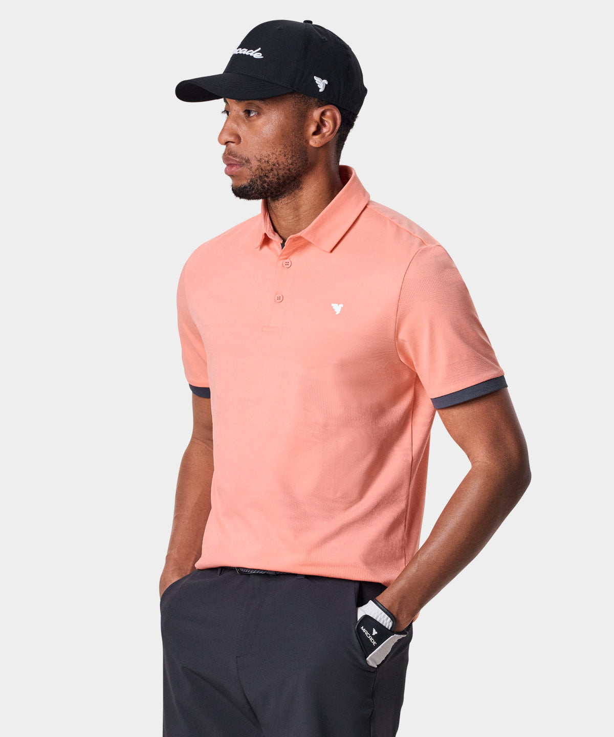 Cole Peach Performance Shirt är tillverkad i ett luftigt funktionstyg med hög andningsförmåga och bekväm tvåvägsstretch. Piken har kontrasterande ärmslut samt gummibaserade logotryck.
