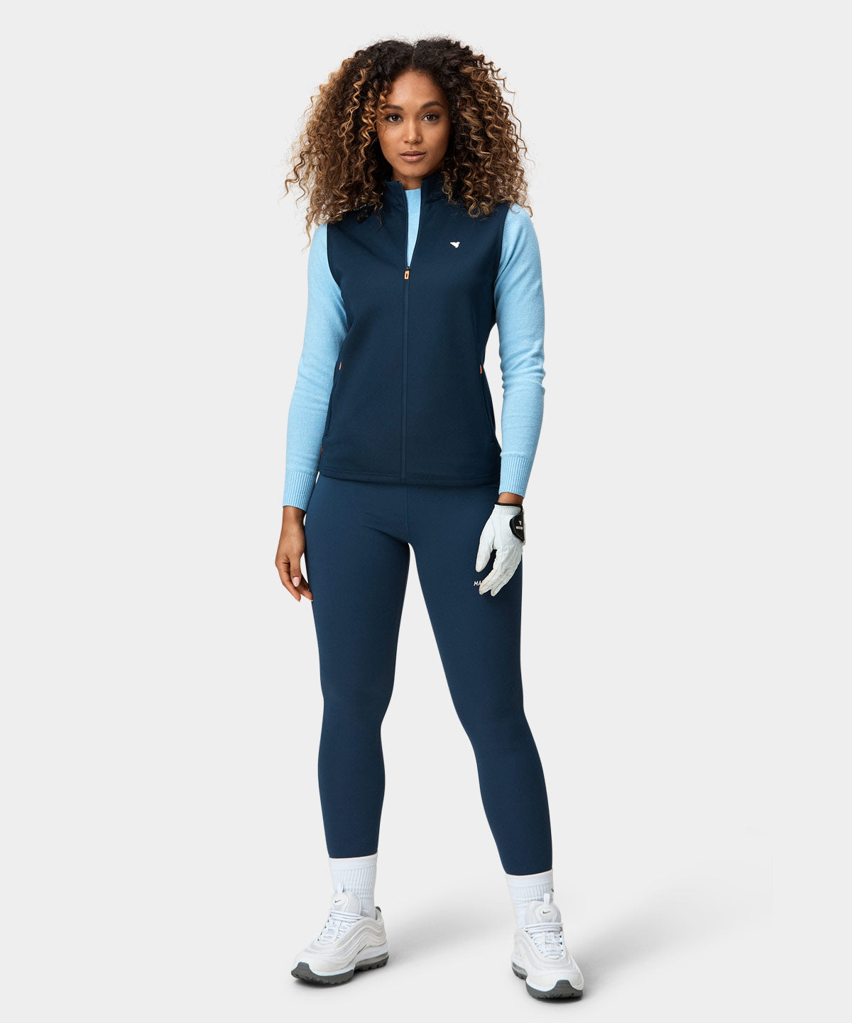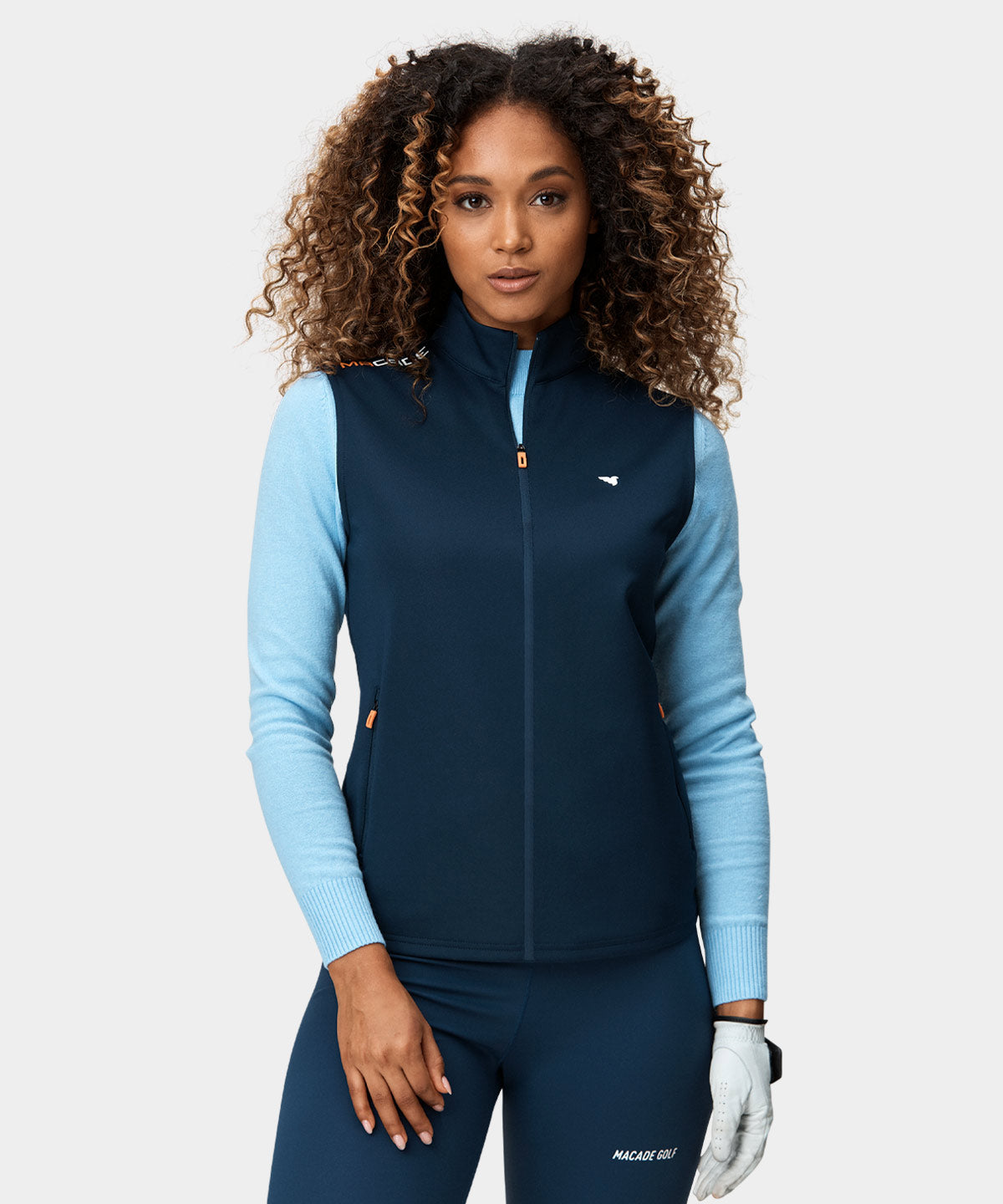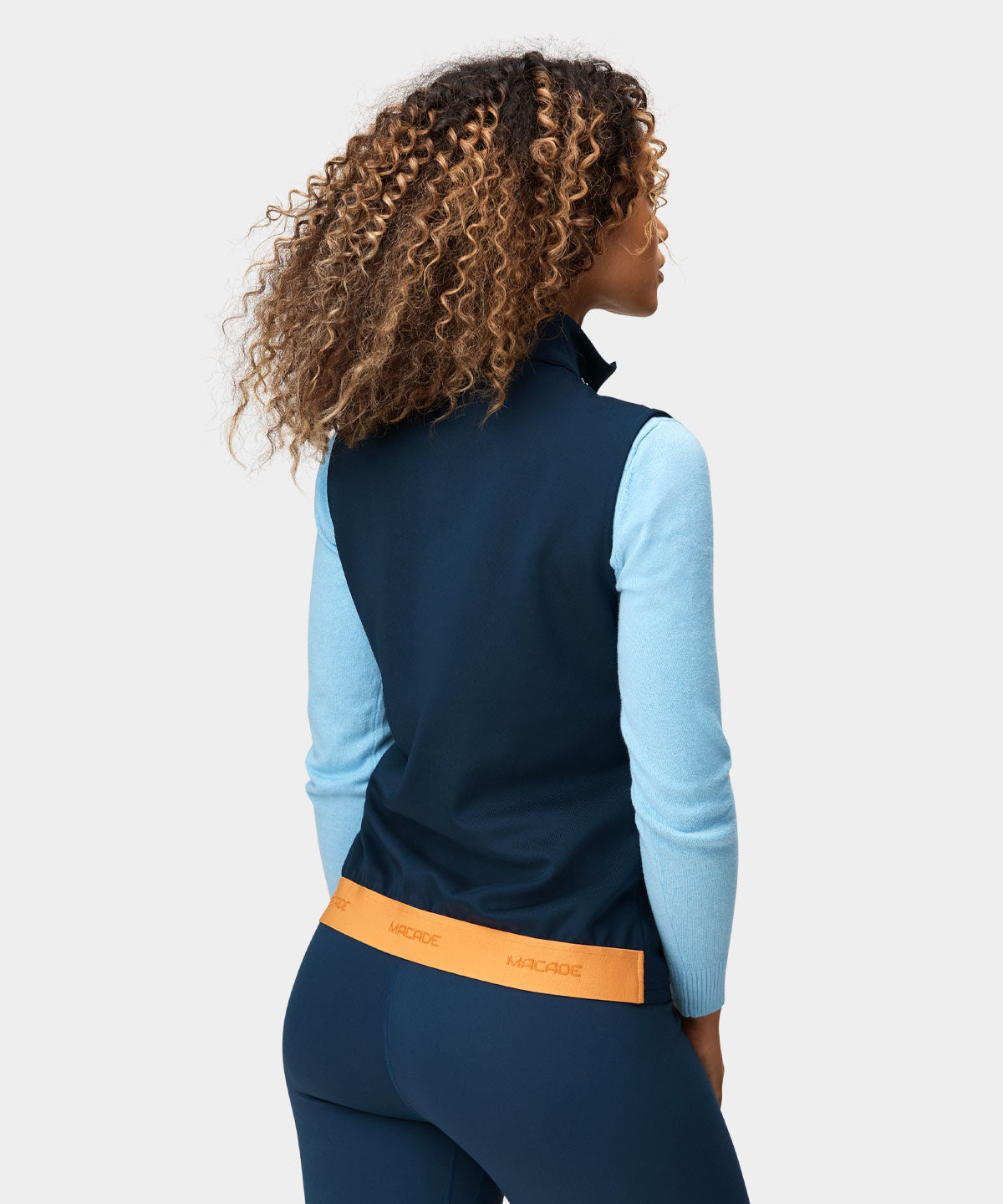 Denna mörkblå zip-väst är del av vår nya Therma-kollektion - Tillverkad i ett mjukt jerseytyg utvecklat för att se ut och kännas som ett klassiska sweatshirt material, men med vindtäta funktioner. Detta i kombination med den sportiga designen gör att denna väst är redo att bli ett av dina favoritplagg i vår.
