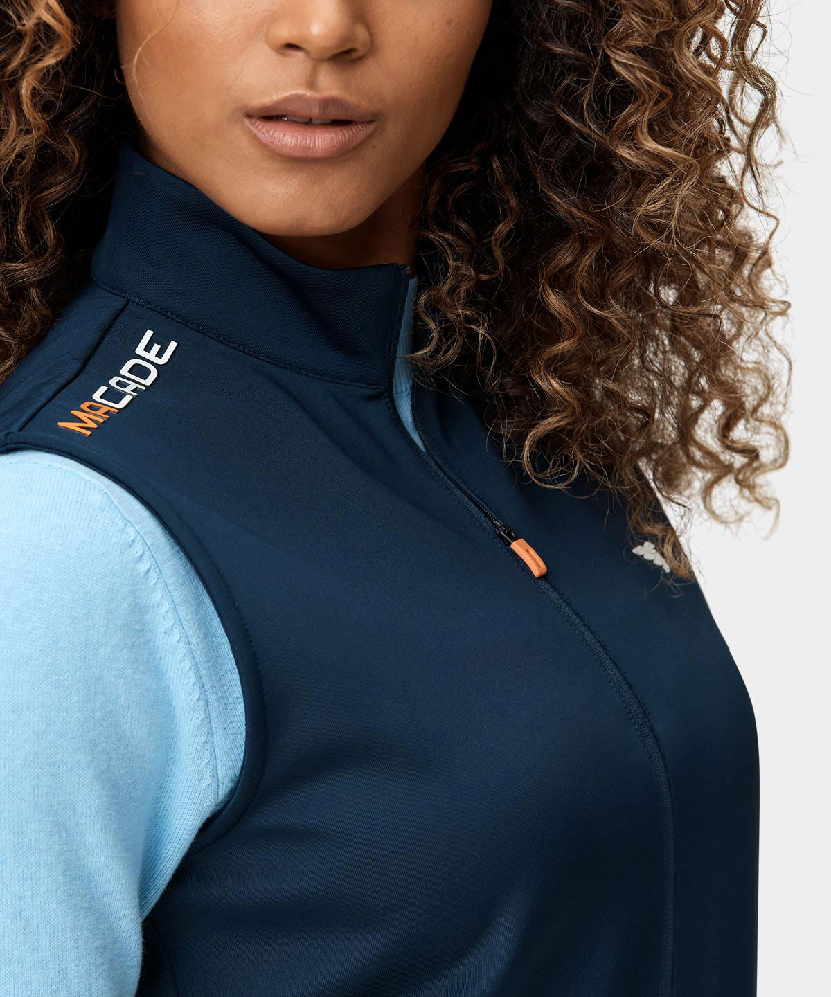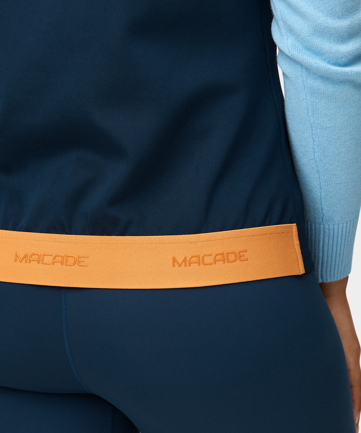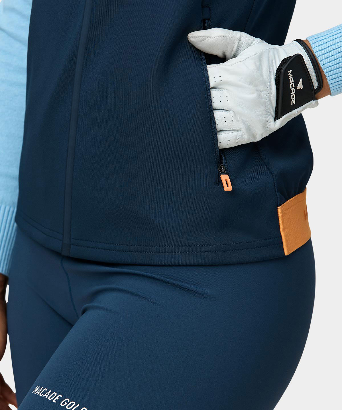 Denna mörkblå zip-väst är del av vår nya Therma-kollektion - Tillverkad i ett mjukt jerseytyg utvecklat för att se ut och kännas som ett klassiska sweatshirt material, men med vindtäta funktioner. Detta i kombination med den sportiga designen gör att denna väst är redo att bli ett av dina favoritplagg i vår.