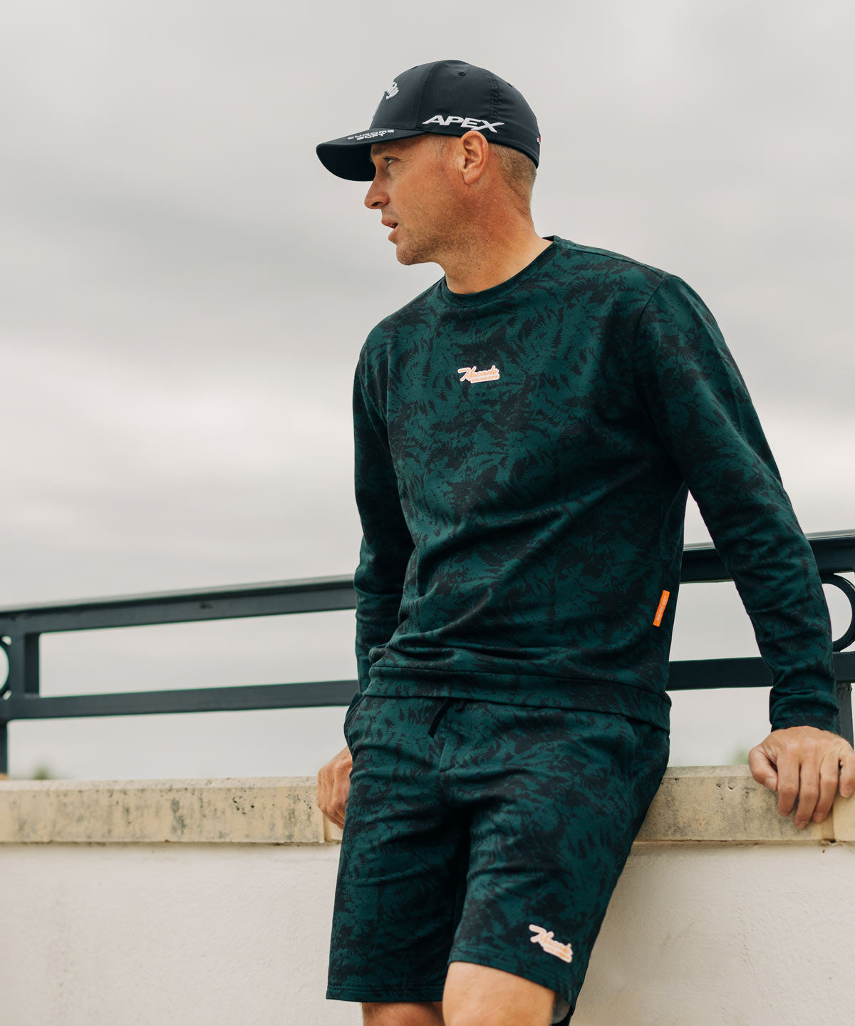 Mörkblåa shorts tillverkade i en avslappnad passform från ett exklusivt jerseytyg med struktur och hög elasticitet. De har en behaglig tyngd vilket gör att de faller snyggt och får i kombination med snörningen framtill en sportig vibe som med fördel även bärs utanför golfklubben. Fern Green Script Shorts är en del av vår officiella Masters Scripting för Macade's ambassadör Alex Norén.