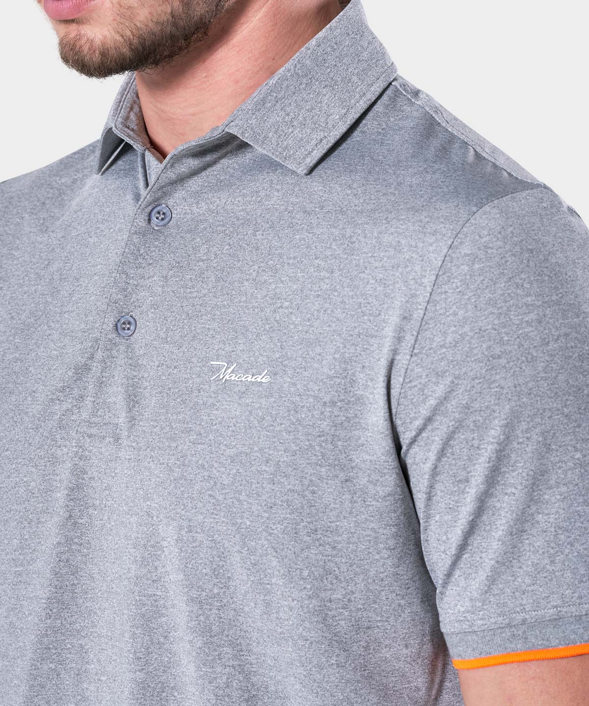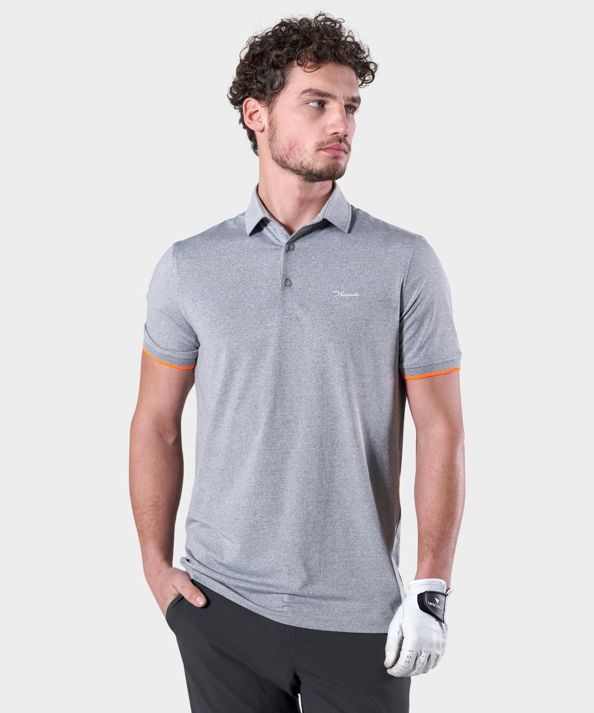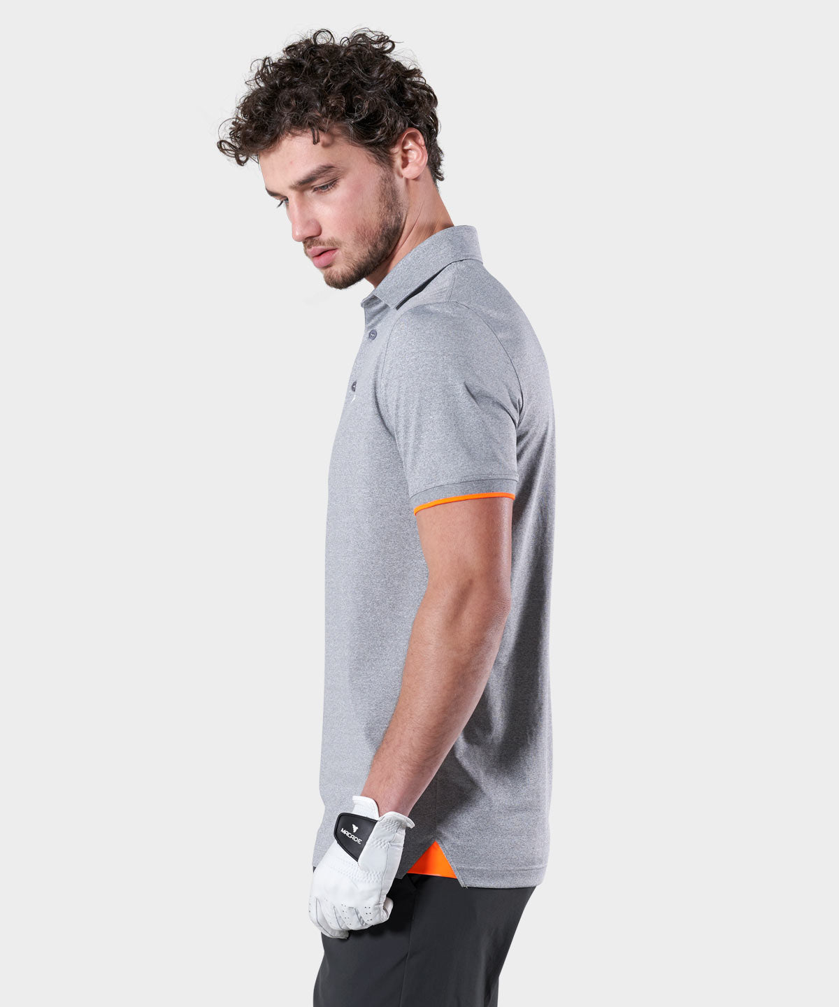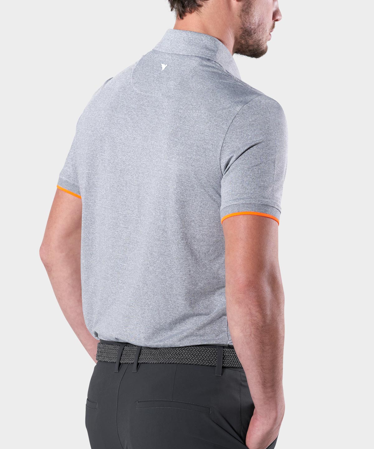 Denna ljusgrå piké är designad i en modern passform med kontrasterande ärmslut och slitsar. Det mjuka jersey tyget håller dig sval ute på banan samtidigt som den höga graden av stretch ger dig en angenäm rörelsefrihet. Matcha gärna piken med våra grå eller anthracitefärgade joggers och de grå skärpet för en fulländad look.