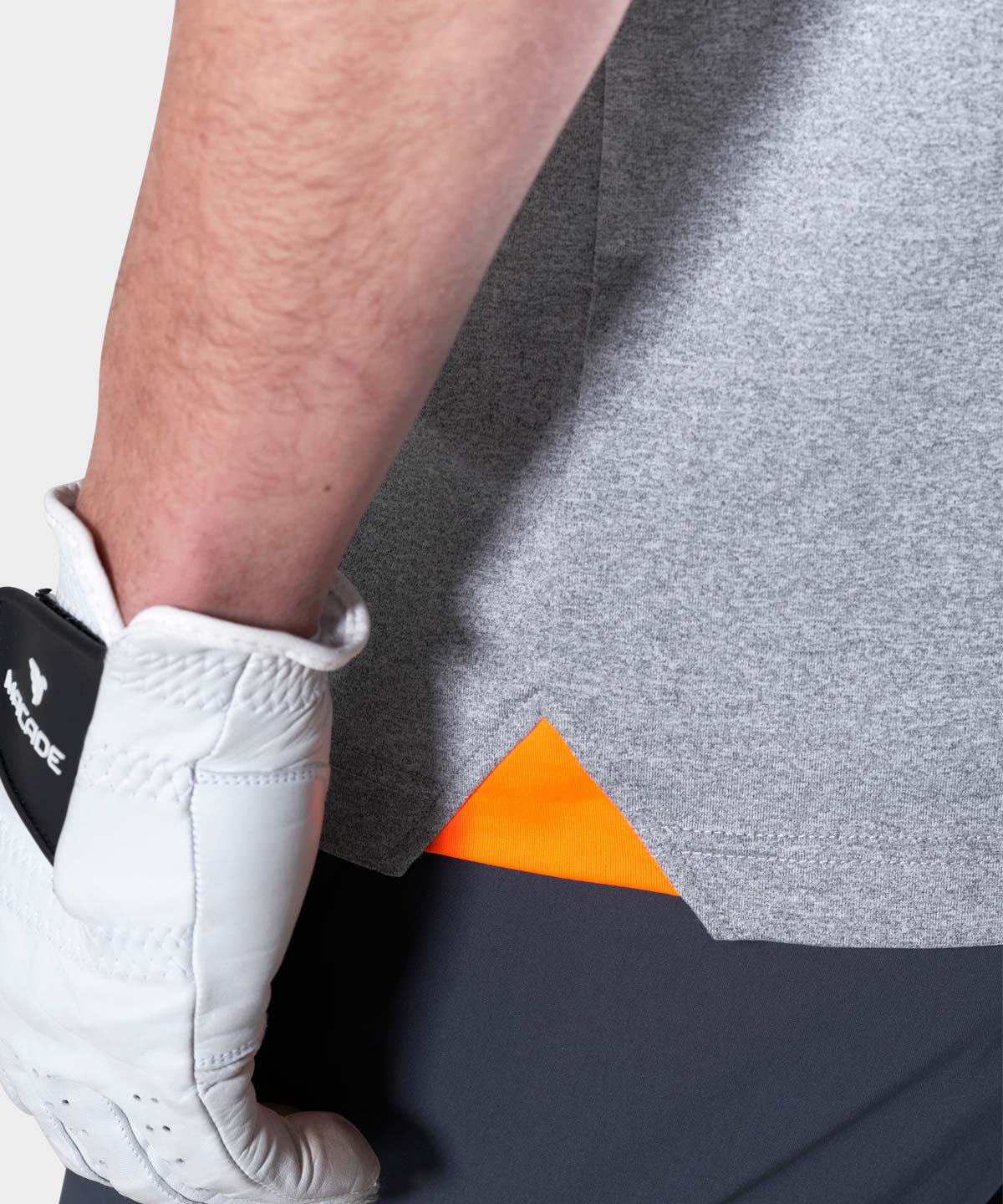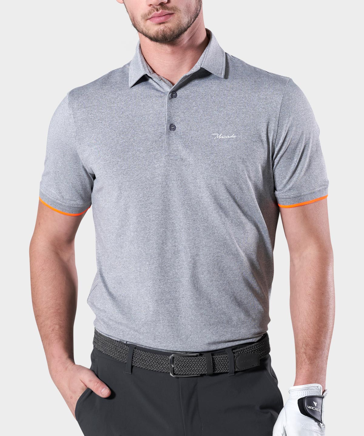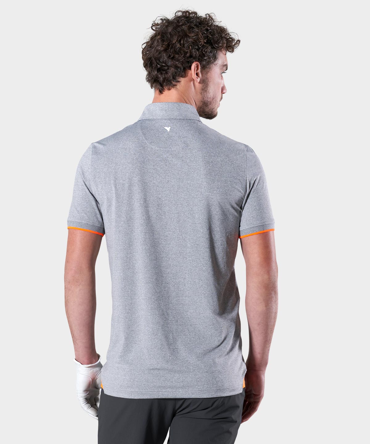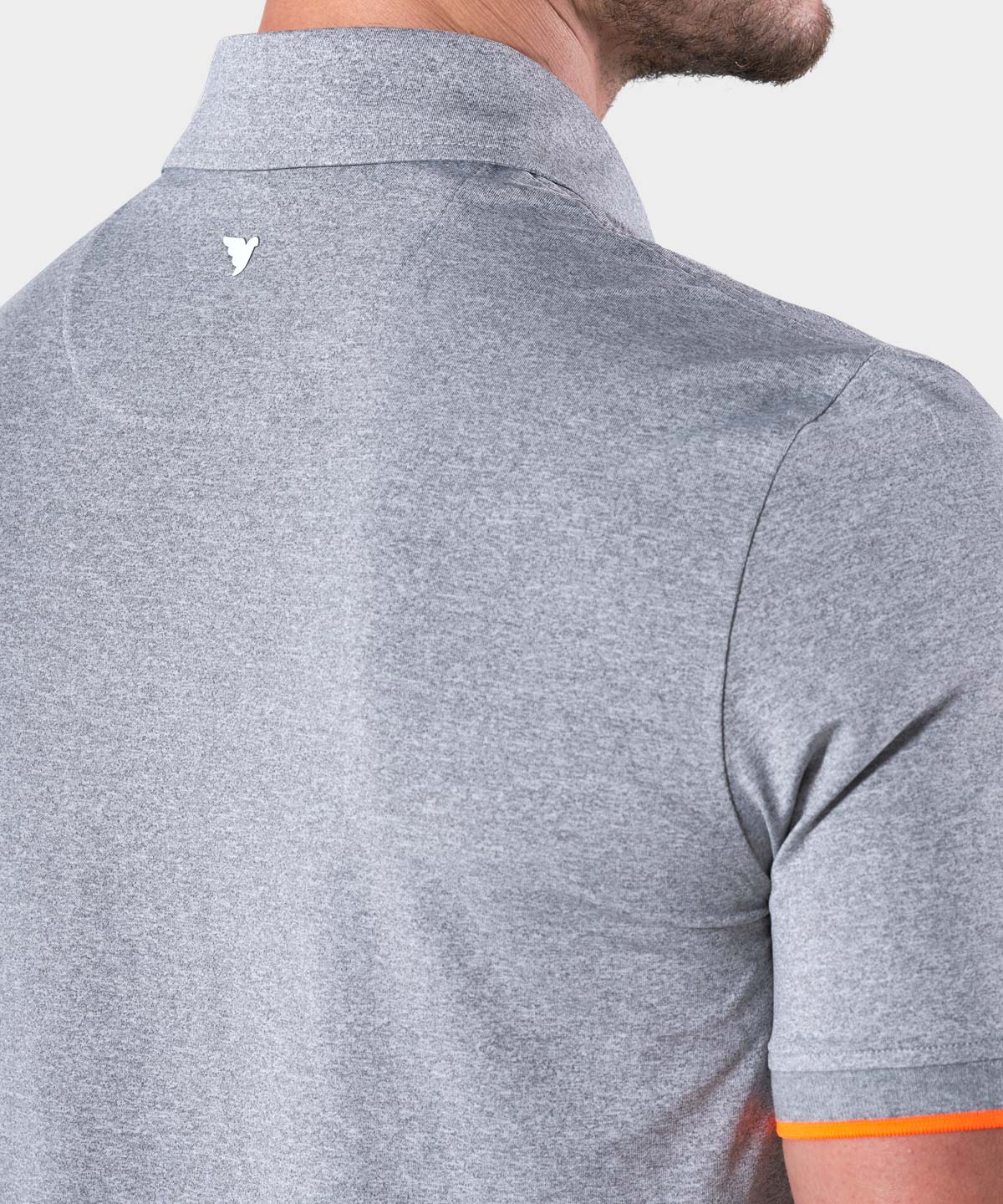Denna ljusgrå piké är designad i en modern passform med kontrasterande ärmslut och slitsar. Det mjuka jersey tyget håller dig sval ute på banan samtidigt som den höga graden av stretch ger dig en angenäm rörelsefrihet. Matcha gärna piken med våra grå eller anthracitefärgade joggers och de grå skärpet för en fulländad look.