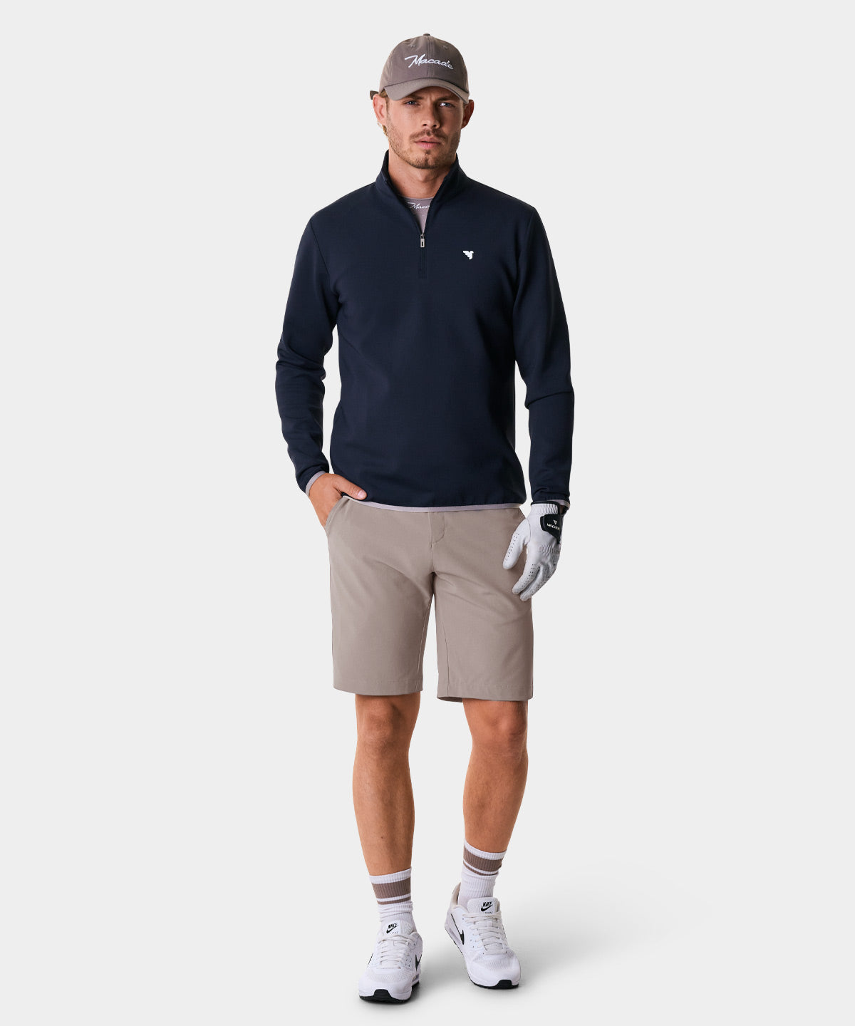 En riktig trotjänare under oförutsägbart väder ute på banan. Denna zip-tröja är en del av vår Therma-kollektion - Tillverkad i ett mjukt jerseytyg utvecklat för att se ut och kännas som sweatshirtmaterial, men med vindtäta funktioner. Detta i kombination med den sportiga designen gör denna tröja redo att bli ditt favoritplagg i vår.