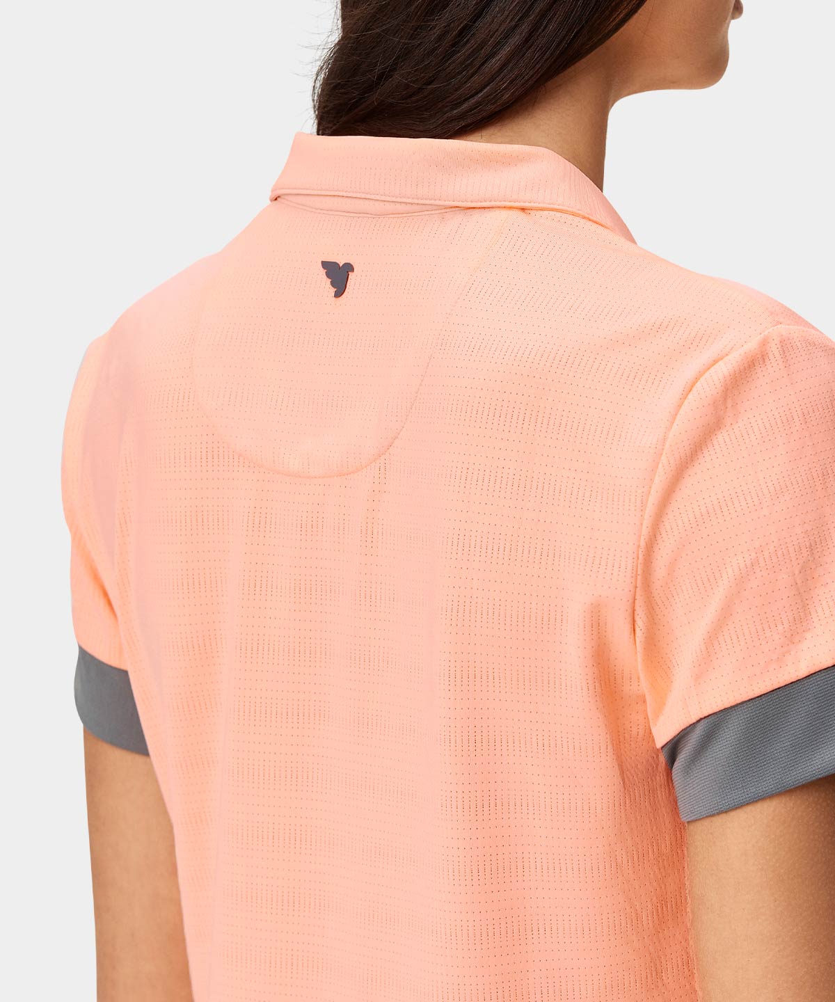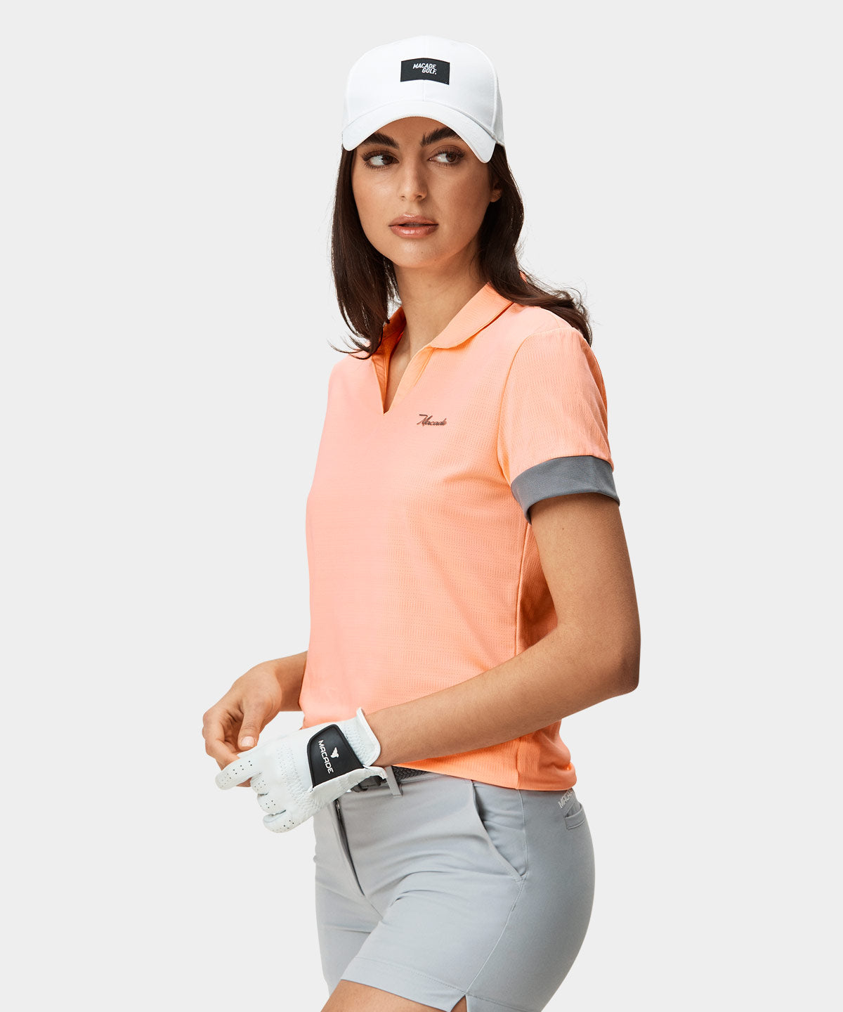 Denna piké har en öppen knapplös v-ringning med mörkgrå konstraterande ärmslut. Pikén är tillverkad i ett funktionstyg med hög andningsförmåga och fyrvägsstretch - allt för att hålla dig torr och bekväm genom hela golfrundan.