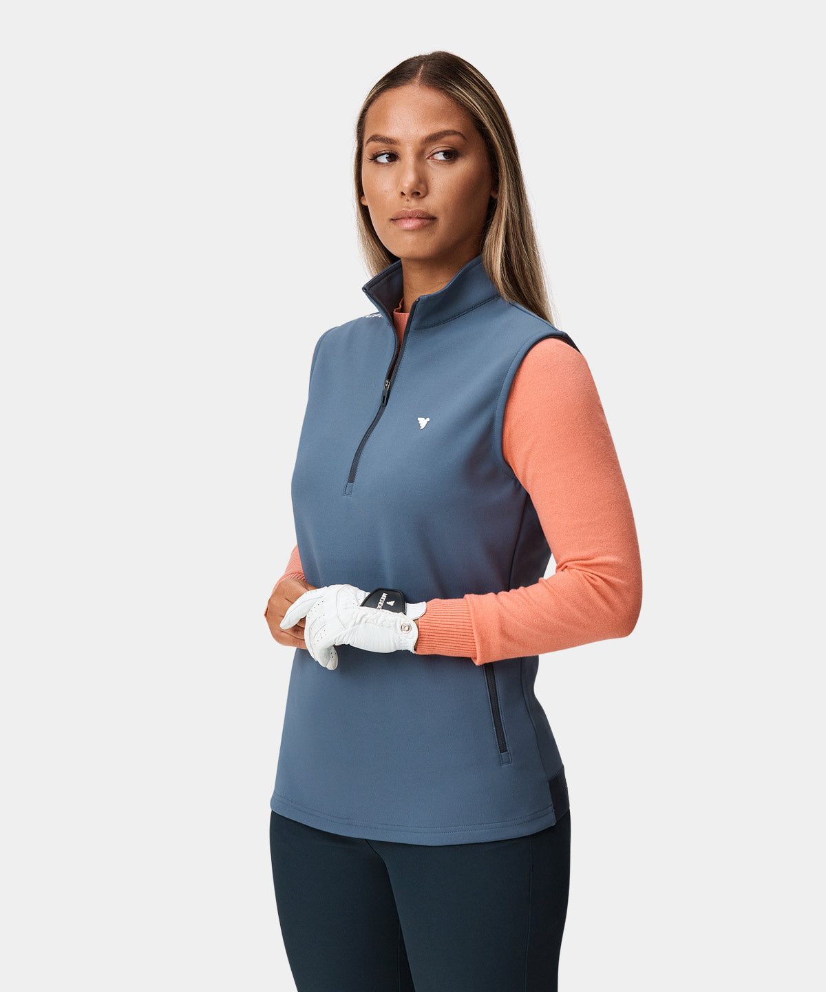 Denna blå zip-väst är del av vår Therma-kollektion - Tillverkad i ett mjukt jerseytyg utvecklat för att se ut och kännas som ett klassiska sweatshirt material, men med vindtäta funktioner. Detta i kombination med den sportiga designen gör att denna väst är redo att bli ett av dina favoritplagg i höst.