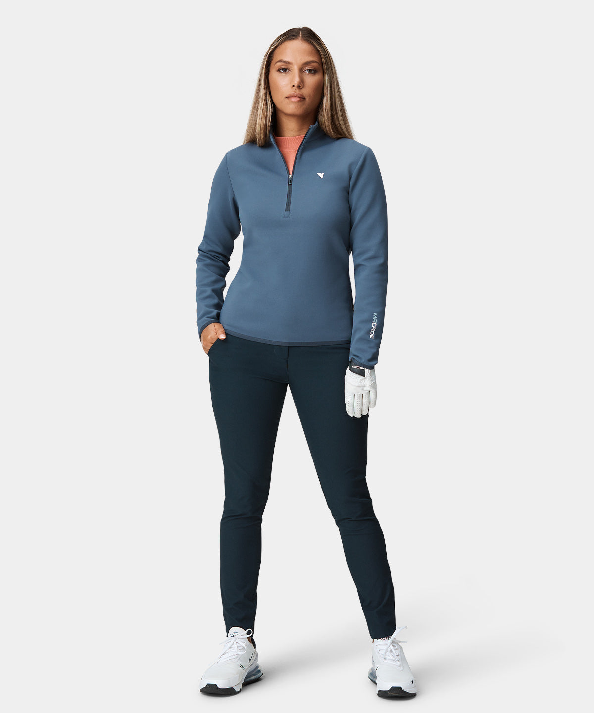 En riktig trotjänare under oförutsägbart väder ute på banan. Denna zip-tröja är en del av vår Therma-kollektion - Tillverkad i ett mjukt jerseytyg utvecklat för att se ut och kännas som sweatshirtmaterial, men med vindtäta funktioner. Detta i kombination med den sportiga designen gör denna svarta tröja redo att bli ditt favoritplagg i vår.