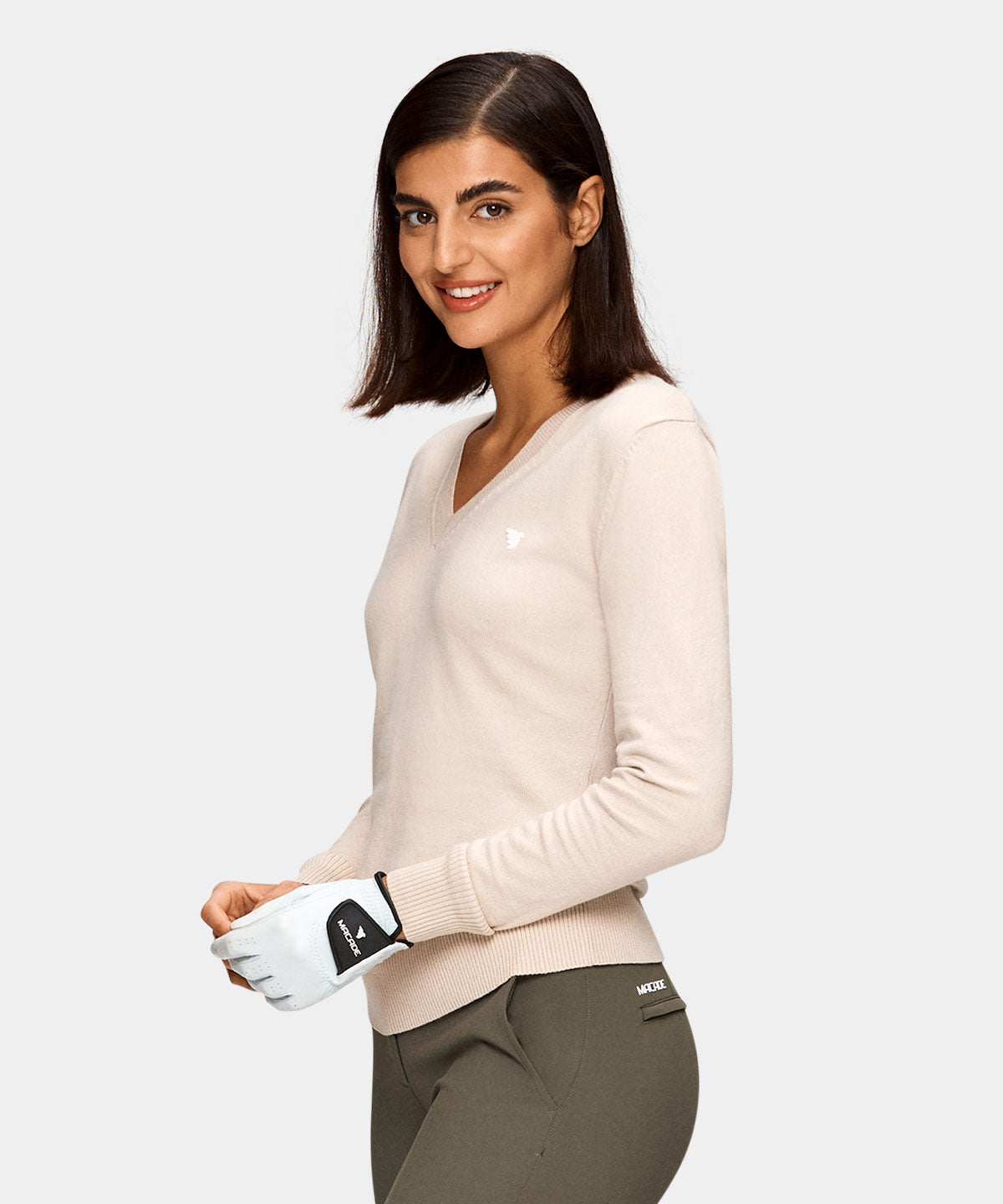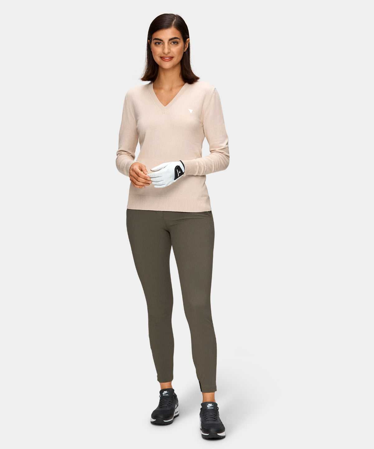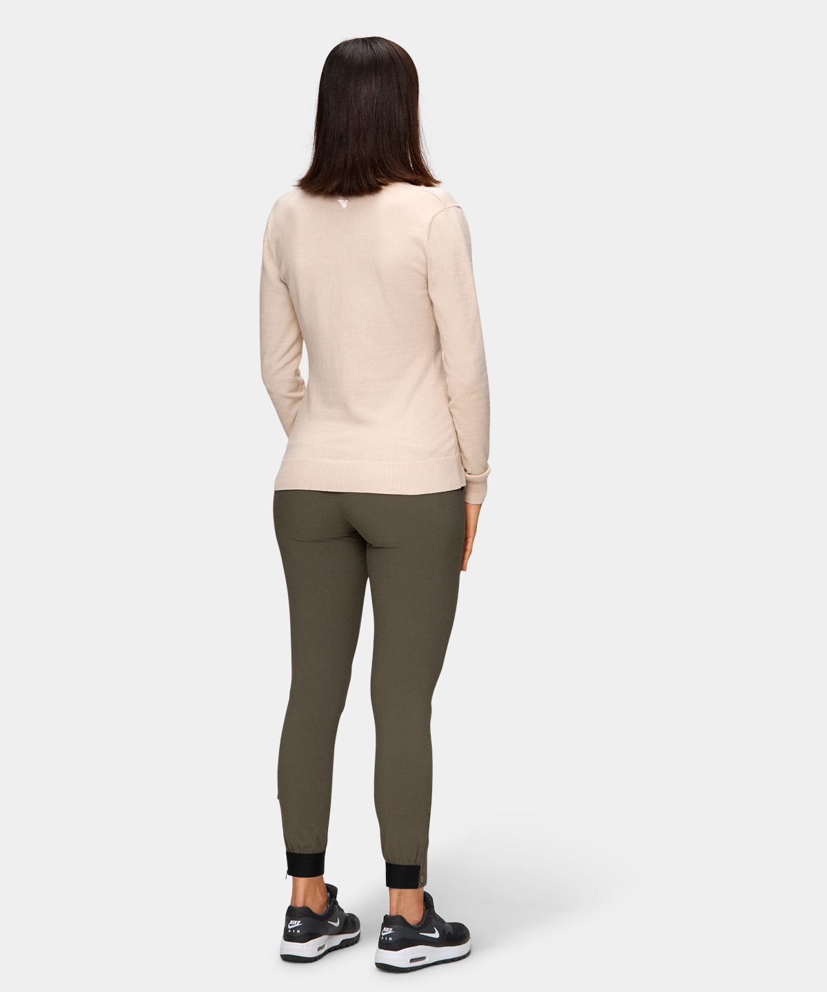 Beige mångsidig tröja stickad i en blandning av lätt borstad bomull och viskos, vilket gör den både exceptionellt mjuk och stretchig. Bär den under en tunn jacka varma höstdagar eller över en vit piké för en klassisk look. Utrustad med detaljer som subtila vita gummibaserade tryck och ribbade ärmslut.
