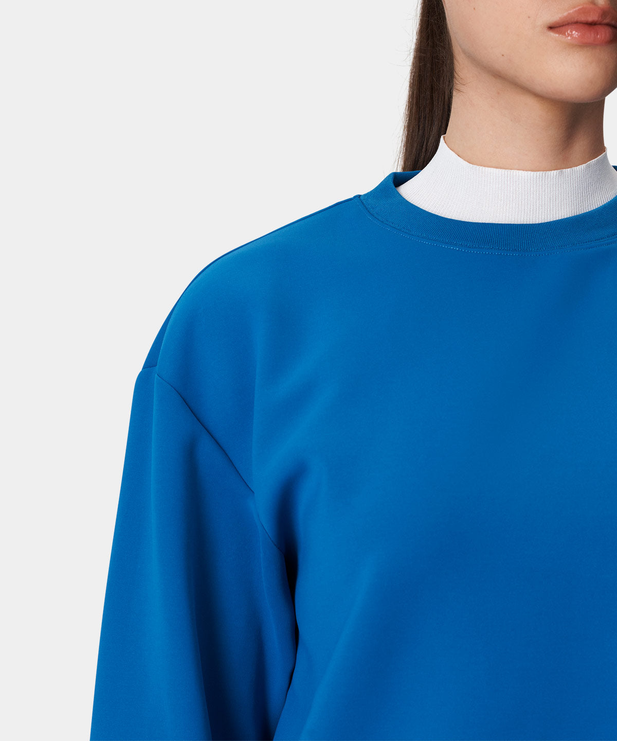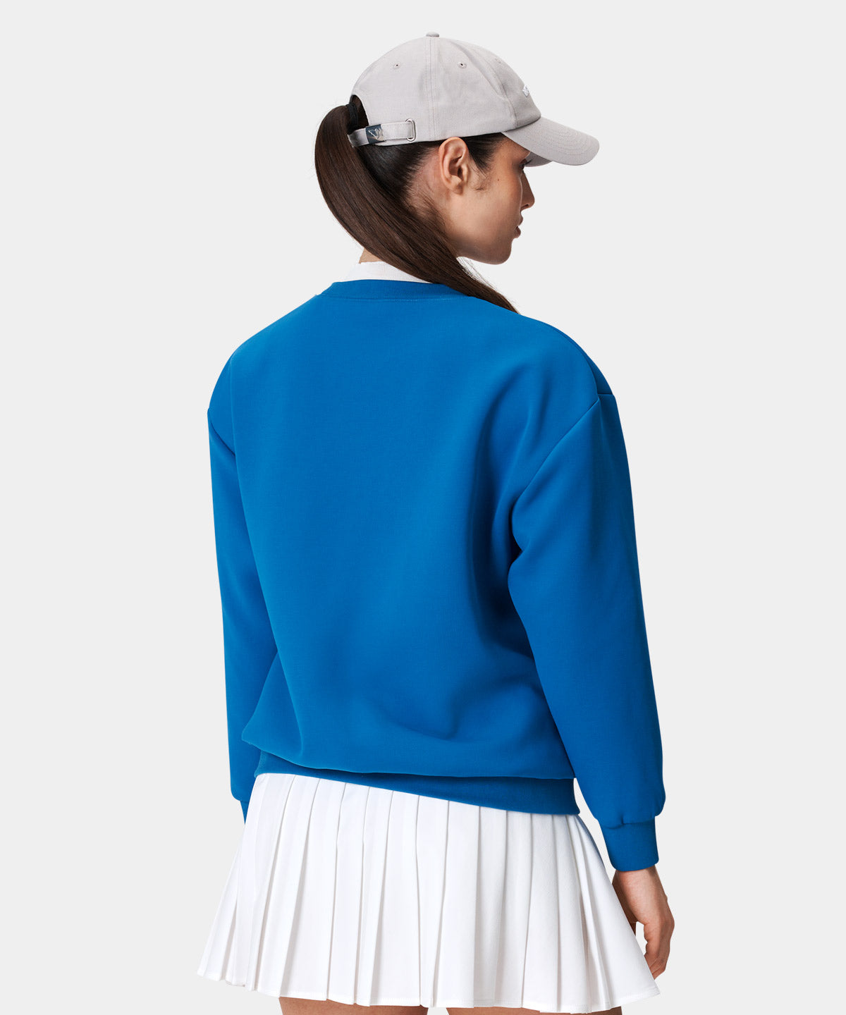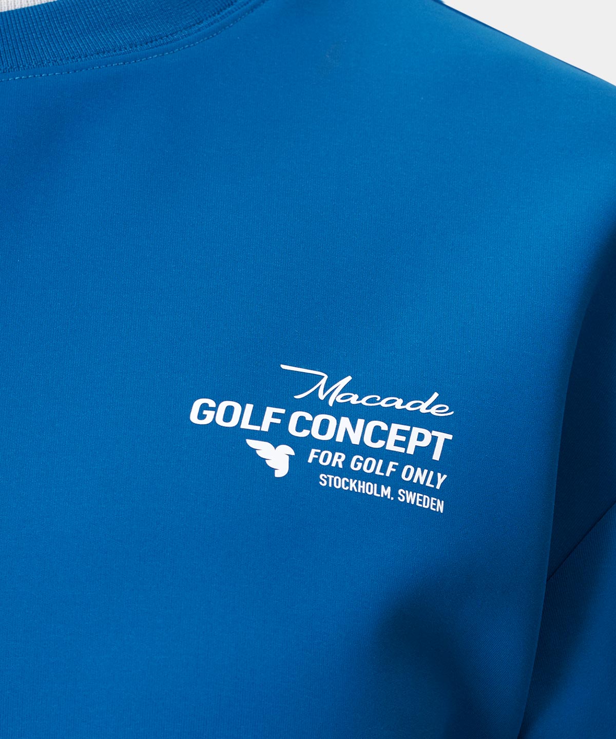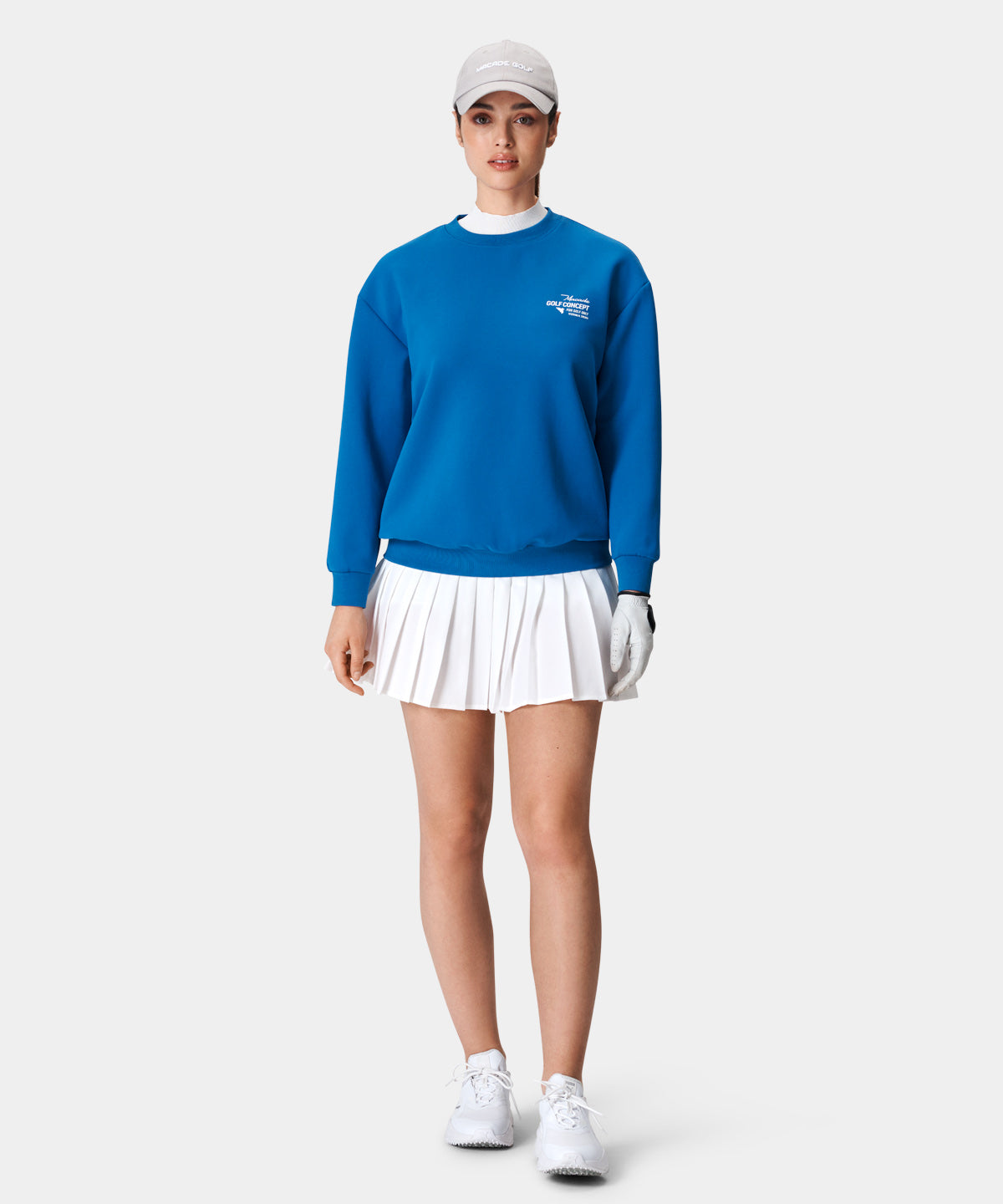 Denna blå tröja är tillverkad av ett mjukt och stretchigt tyg som ger dig full rörelsefrihet genom hela svingen. Den har ribbstickade muddar och hals för en förbättrad passform. Den avslappnade looken passar lika bra på banan som utanför.